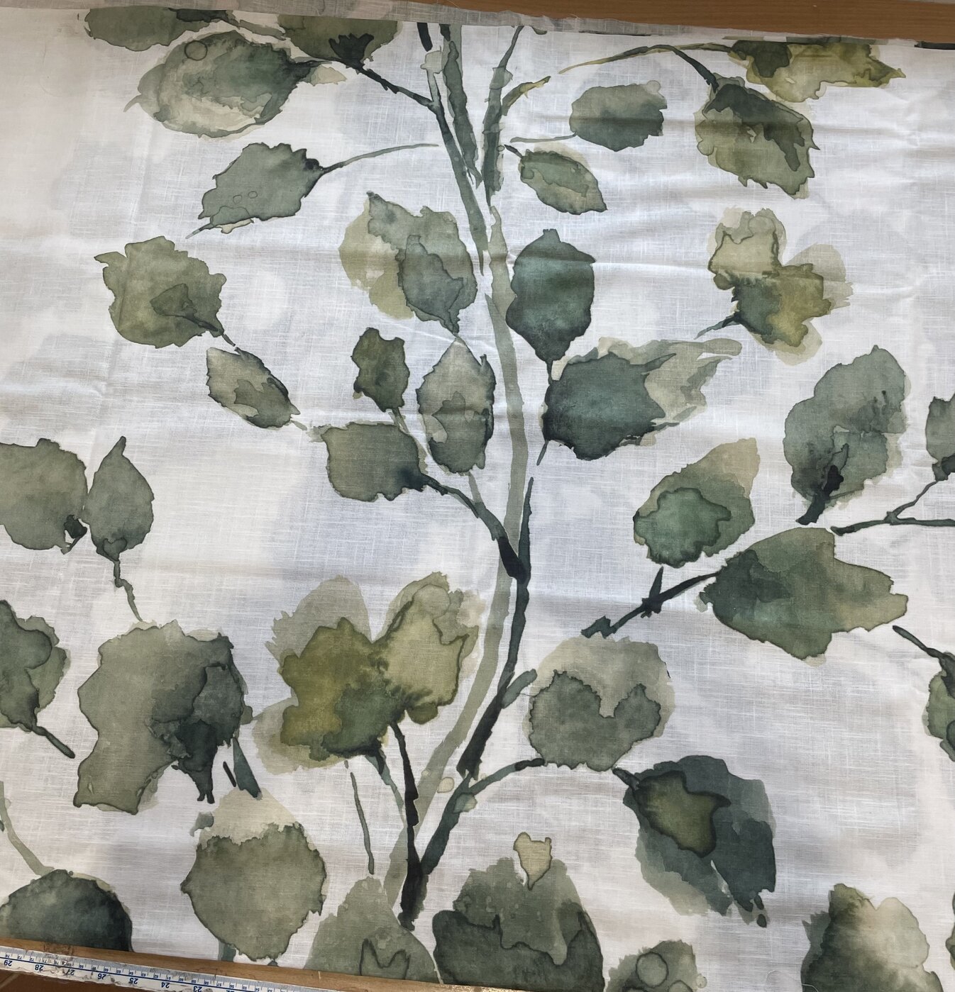 Palan koko 3,55m x 140cm. Kevyt, läpikuultava verhokangas, jossa yksi kuvio kankaan leveyssuunnassa, eli yksi nouseva "puukuvio" keskellä kangasta. Kuvion korkeus kankaassa on 113cm.
