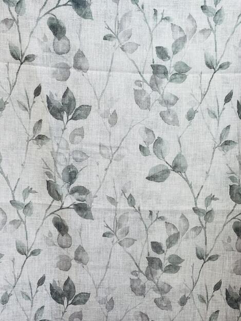 Palan koko 2,85m x 150cm. Kevyt, läpikuultava pellavajäljitelmäkangas. Pohjaväri luonnonvalkoinen,