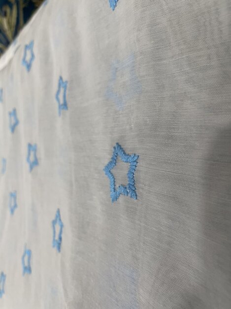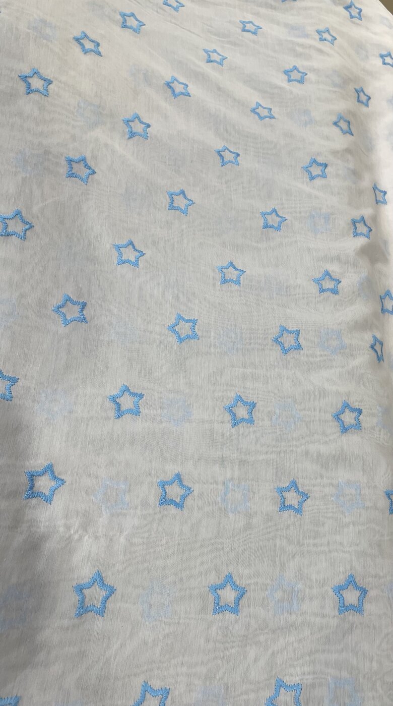 TARJOUS Tähdet turkoosi 280cm Kankaan leveys 280 cm. Kevyt polyesteriverhokangas,jossa kirjailtuja tähtiä turkoosilla. Tähtien koko 3cm. Kangas on valkoinen ja läpikuultava 6,00 € norm. 18,90 € Valitse kankaan pituus 0 m 1 m 2 m 3 m 4 m 5 m 6 m 7 m 8 m 9 m 10 m 11 m 12 m 13 m 14 m 15 m 16 m 17 m 18 m 19 m 20 m 0 cm 10 cm 20 cm 30 cm 40 cm 50 cm 60 cm 70 cm 80 cm 90 cm Lisää ostoskoriin Tilaa näytepala kankaastaNäytepalan hinta 1,50 €. Koko n. 10x10 cm. Valitse mukaan ompelupalvelu (sis. työn ja tarvikkeet) Verhojen määrä: 1 kpl 2 kpl 3 kpl 4 kpl Suoraverho leveys 150 cm + 22,00 € Purjerengasverho leveys max 150 cm + 42,00 € Sivupainot 2kpl + 4,00 € Verho monsuuninauhalla leveys 150 cm + 27,00 € Verho wavenauhalla, leveys 150 cm + 28,00 € Ompelupalvelut yhteensä: Hinta sisältää valitut ompelupalvelut valitulle verhomäärälle. Ompelupalvelut näkyvät tilauksen yhteydessä ostoskorissa. Mittausohje-sivulta löydät ohjeita mittaamiseen ja kankaan menekin laskukaavion. Ompelutyön toimitusaika on noin 1,5 viikkoa. Jos haluat ommeltavan jotain muuta niin ota yhteyttä kangaskeskus@elisanet.fi Saatavuus Varastossa (8.0 m) Näytä toimituskuluarvio Liittyvät tuotteet TARJOUS Ruudukas sininen 6,00 €/mNorm. 16,90 €/m TARJOUS Sininen medaljonki kevyt 10,00 €/mNorm. 21,90 €/m TARJOUS Butterfly Ruusu 8,00 €/mNorm. 22,90 €/m