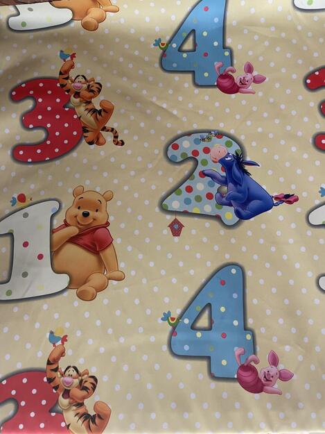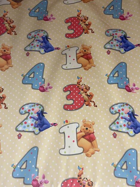 TARJOUS Nalle Puh Pimennyskangas Kankaan leveys 140cm. Raportti 65cm.Pimennysverhokangas Nalle Puh-aiheisella kuvioinnilla. Numeroiden korkeus n.20cm. HUOM!! Pohjan väri on kuvista poiketen vaalea sitruunankeltainen eikä beige, kuten kuvassa saattaa näyttää. 14,90 € norm. 18,90 € Valitse kankaan pituus 0 m 1 m 2 m 3 m 4 m 5 m 6 m 7 m 8 m 9 m 10 m 11 m 12 m 13 m 14 m 15 m 16 m 17 m 18 m 19 m 20 m 0 cm 10 cm 20 cm 30 cm 40 cm 50 cm 60 cm 70 cm 80 cm 90 cm Tilaa näytepala kankaastaNäytepalan hinta 1,50 €. Koko n. 10x10 cm. Valitse mukaan ompelupalvelu (sis. työn ja tarvikkeet) Verhojen määrä: 1 kpl 2 kpl 3 kpl 4 kpl Suoraverho leveys 150 cm + 22,00 € Purjerengasverho leveys max 150 cm + 42,00 € Sivupainot 2kpl + 4,00 € Verho monsuuninauhalla leveys 150 cm + 27,00 € Verho wavenauhalla, leveys 150 cm + 28,00 € Ompelupalvelut yhteensä: Hinta sisältää valitut ompelupalvelut valitulle verhomäärälle. Ompelupalvelut näkyvät tilauksen yhteydessä ostoskorissa. Mittausohje-sivulta löydät ohjeita mittaamiseen ja kankaan menekin laskukaavion. Ompelutyön toimitusaika on noin 1,5 viikkoa. Jos haluat ommeltavan jotain muuta niin ota yhteyttä kangaskeskus@elisanet.fi Saatavuus Ei saatavana! Näytä toimituskuluarvio Liittyvät tuotteet Greige Pimennysverho Kangas 14,90 €/m Harmaa Pimennysverho kangas 14,90 €/m Milo Köynnös 22,90 €/m Milo Peikonlehti 22,90 €/m Pimennysverho Kangas Rib Kaakao 19,90 €/m