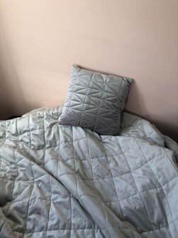 Kankaan leveys 140 cm. Ylellinen laskeutuva sametti. Sängynpeitto on samasta kankaasta tehty.