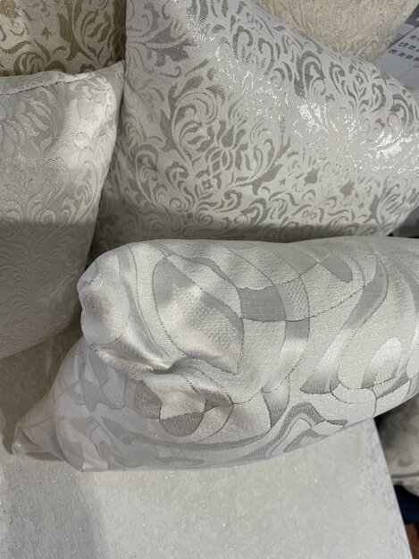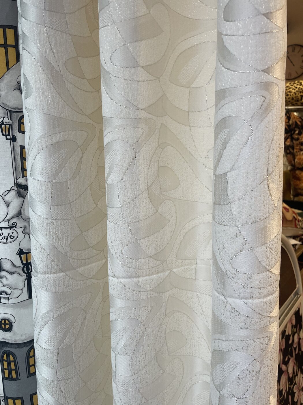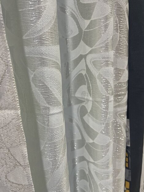 UUTUUS Isidora Abstrakti hopea 280cm Kankaan leveys 280cm. Kudottu kuviokangas, jossa kimallelankaa mukana. Sävy luonnonvalkoinen/hopea, Pohjan väri vaalea, mutta taittaa valossa vaaleaan hopeaan, kuten kuvista voi nähdä, kuviot luonnonvalkoisella sametilla. Peittävä kangas, soveltuu esim. juhlaviksi verhoiksi, tyynyiksi yms. Kangas on tilauskangas, toimitusaika reilu 2 viikkoaJossain kuvassa kangas on selkeästi hopeisempi, se on kankaan nurja puoli, eli siellä värit ovat päinvastoin kuin oikealla puolella. 68,00 € Valitse kankaan pituus 0 m 1 m 2 m 3 m 4 m 5 m 6 m 7 m 8 m 9 m 10 m 11 m 12 m 13 m 14 m 15 m 16 m 17 m 18 m 19 m 20 m 0 cm 10 cm 20 cm 30 cm 40 cm 50 cm 60 cm 70 cm 80 cm 90 cm Lisää ostoskoriin Tilaa näytepala kankaastaNäytepalan hinta 1,50 €. Koko n. 10x10 cm. Valitse mukaan ompelupalvelu (sis. työn ja tarvikkeet) Verhojen määrä: 1 kpl 2 kpl 3 kpl 4 kpl Suoraverho leveys 150 cm + 22,00 € Purjerengasverho leveys max 150 cm + 42,00 € Verho monsuuninauhalla leveys 150 cm + 27,00 € Verho wavenauhalla, leveys 150 cm + 28,00 € Sivupainot, 2kpl + 4,00 € Ompelupalvelut yhteensä: Hinta sisältää valitut ompelupalvelut valitulle verhomäärälle. Ompelupalvelut näkyvät tilauksen yhteydessä ostoskorissa. Mittausohje-sivulta löydät ohjeita mittaamiseen ja kankaan menekin laskukaavion. Ompelutyön toimitusaika on noin 1,5 viikkoa. Jos haluat ommeltavan jotain muuta niin ota yhteyttä kangaskeskus@elisanet.fi Saatavuus Varastossa (10.0 m) Näytä toimituskuluarvio