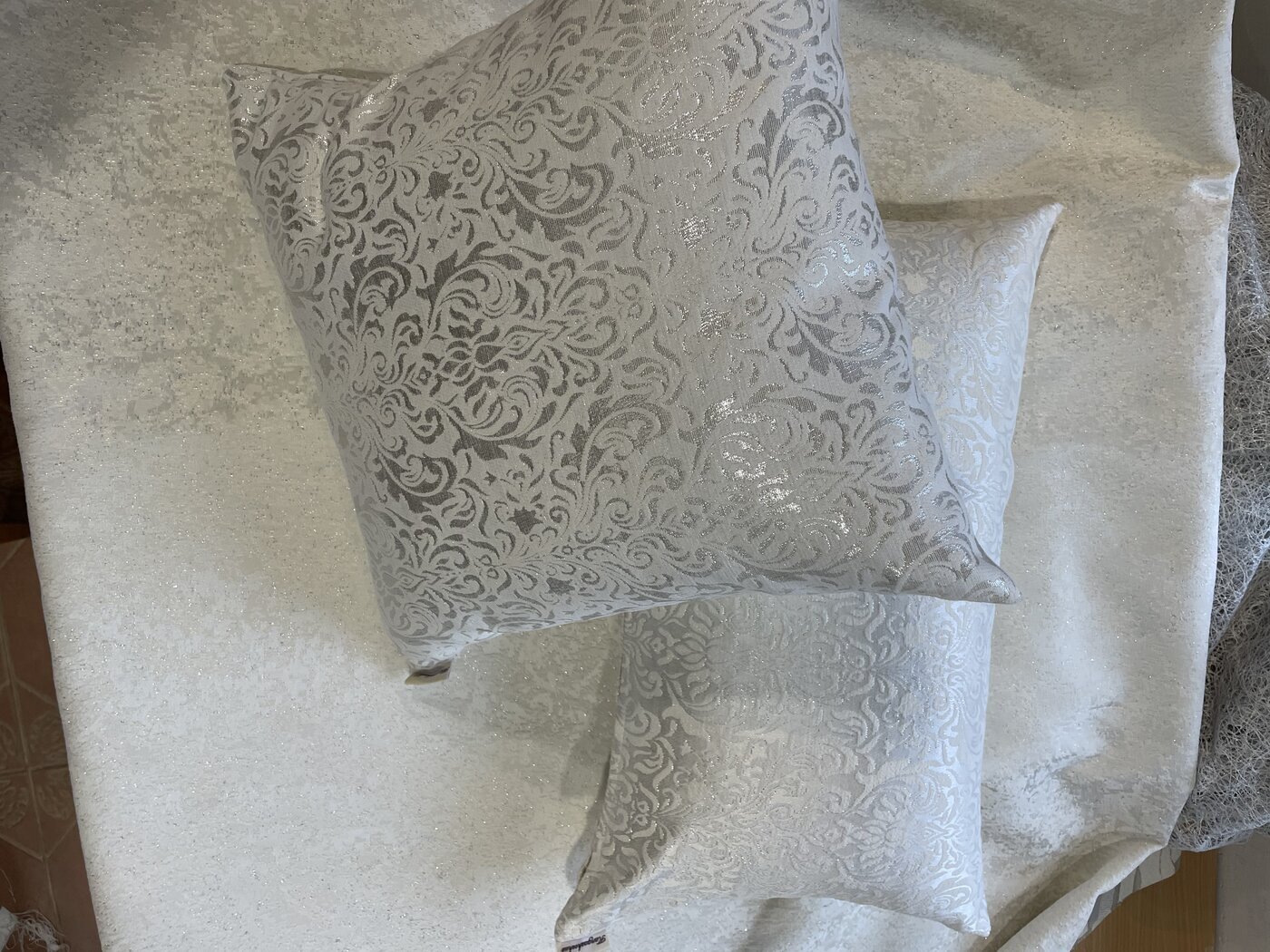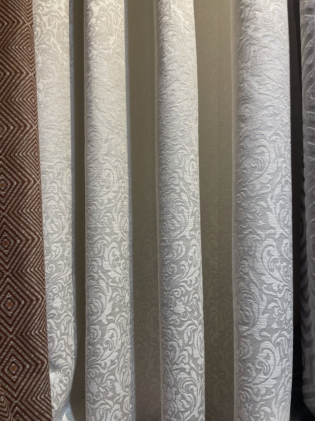 UUTUUS Isidora Hopeamedaljonki 280cm Kankaan leveys 280cm. Kudottu kuviokangas, jossa kimallelankaa mukana. Sävy luonnonvalkoinen/hopea, Pohjan väri vaalea/hento hopea, kuviot luonnonvalkoisella sametilla, raportti 27,5cm, Peittävä kangas, soveltuu esim. juhlaviksi verhoiksi, tyynyiksi yms. Kangas on tilauskangas, toimitusaika reilu 2 viikkoa 68,00 € Valitse kankaan pituus 0 m 1 m 2 m 3 m 4 m 5 m 6 m 7 m 8 m 9 m 10 m 11 m 12 m 13 m 14 m 15 m 16 m 17 m 18 m 19 m 20 m 0 cm 10 cm 20 cm 30 cm 40 cm 50 cm 60 cm 70 cm 80 cm 90 cm Lisää ostoskoriin Tilaa näytepala kankaastaNäytepalan hinta 1,50 €. Koko n. 10x10 cm. Valitse mukaan ompelupalvelu (sis. työn ja tarvikkeet) Verhojen määrä: 1 kpl 2 kpl 3 kpl 4 kpl Suoraverho leveys 150 cm + 22,00 € Purjerengasverho leveys max 150 cm + 42,00 € Verho monsuuninauhalla leveys 150 cm + 27,00 € Verho wavenauhalla, leveys 150 cm + 28,00 € Sivupainot, 2kpl + 4,00 € Ompelupalvelut yhteensä: Hinta sisältää valitut ompelupalvelut valitulle verhomäärälle. Ompelupalvelut näkyvät tilauksen yhteydessä ostoskorissa. Mittausohje-sivulta löydät ohjeita mittaamiseen ja kankaan menekin laskukaavion. Ompelutyön toimitusaika on noin 1,5 viikkoa. Jos haluat ommeltavan jotain muuta niin ota yhteyttä kangaskeskus@elisanet.fi Saatavuus Varastossa (10.0 m) Näytä toimituskuluarvio